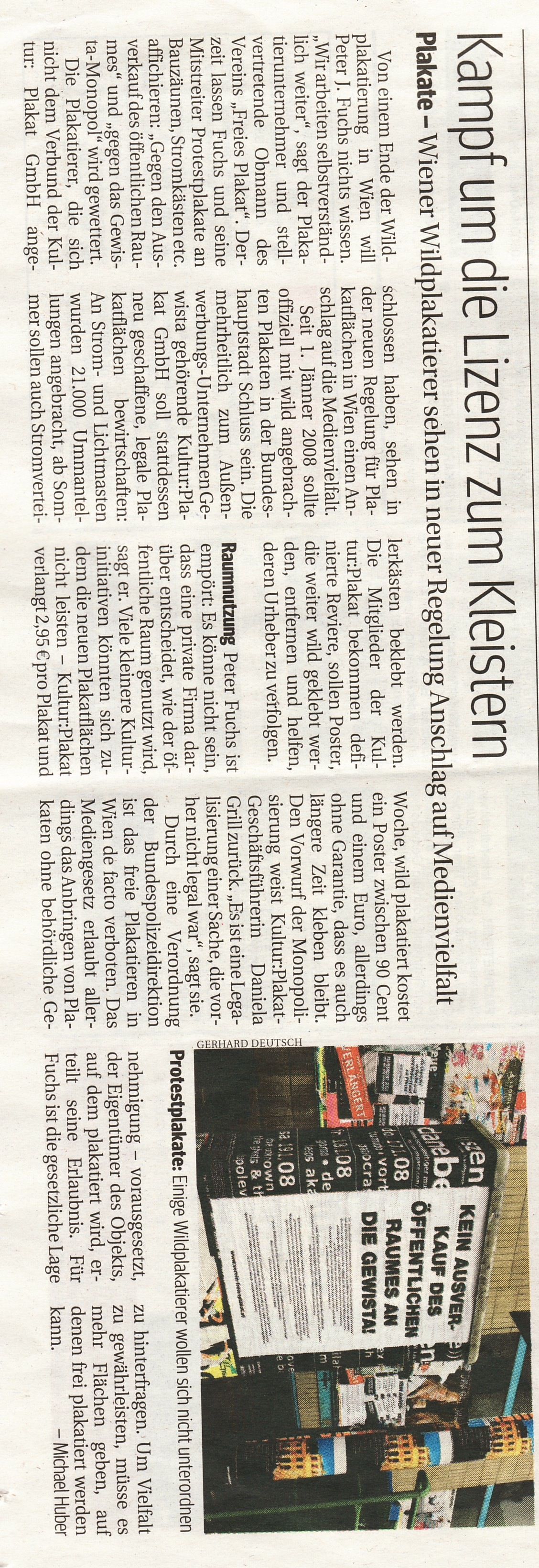 | 21.12.2007 | Wiener Zeitung: Wiens Wildplakatierer wehren sich | |
